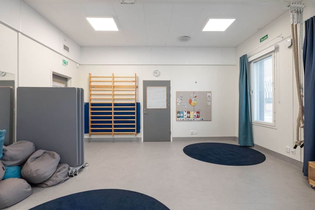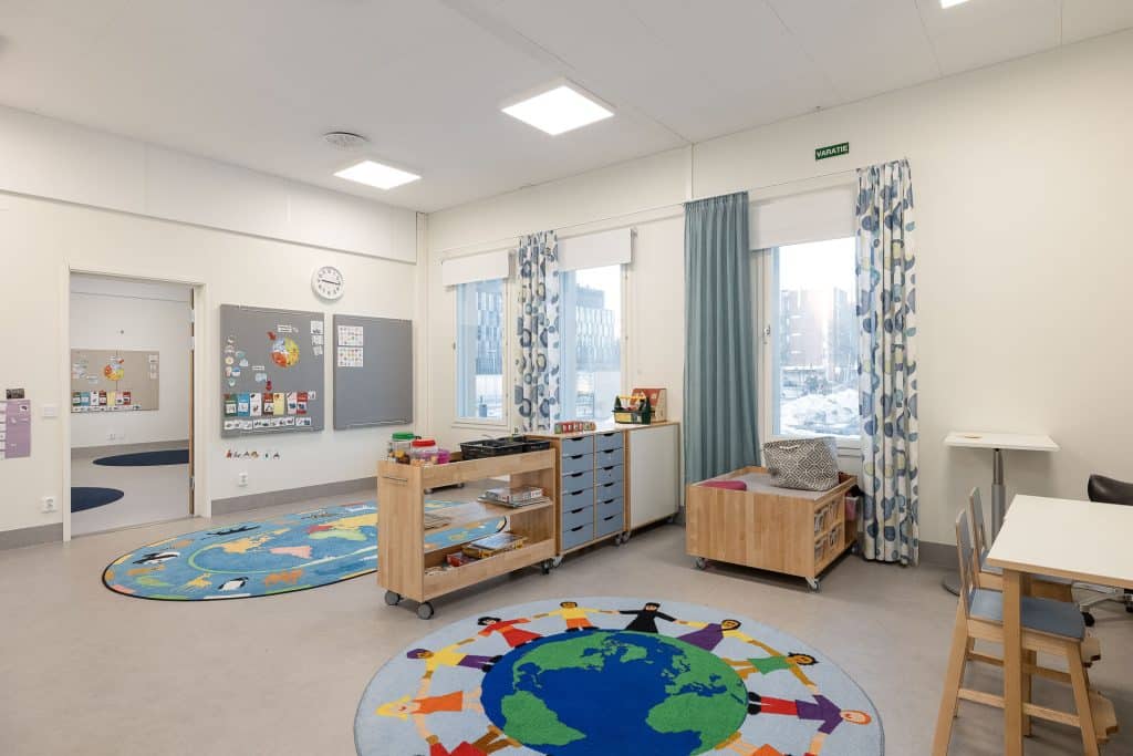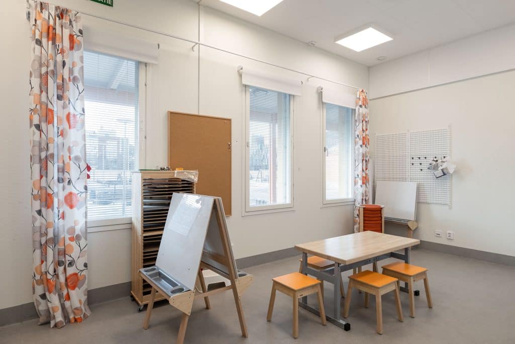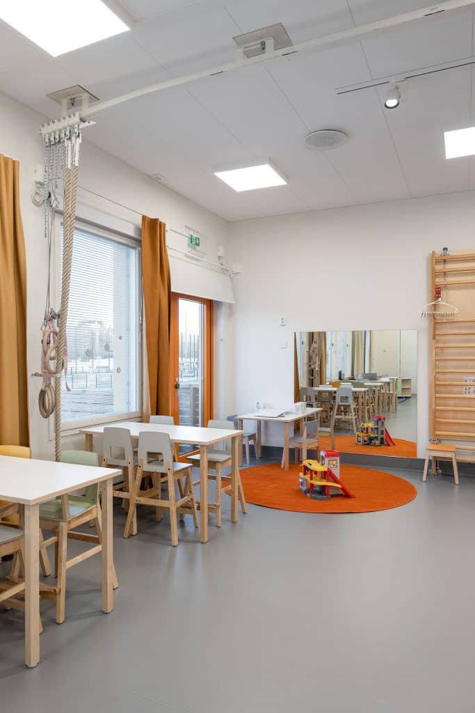 Adapteon suunnittelema päiväkoti toimii muuntautuvissa tiloissa pääkaupunkiseudulla. Toimitilakuvaus toi näkyväksi tilojen toimivuuden.